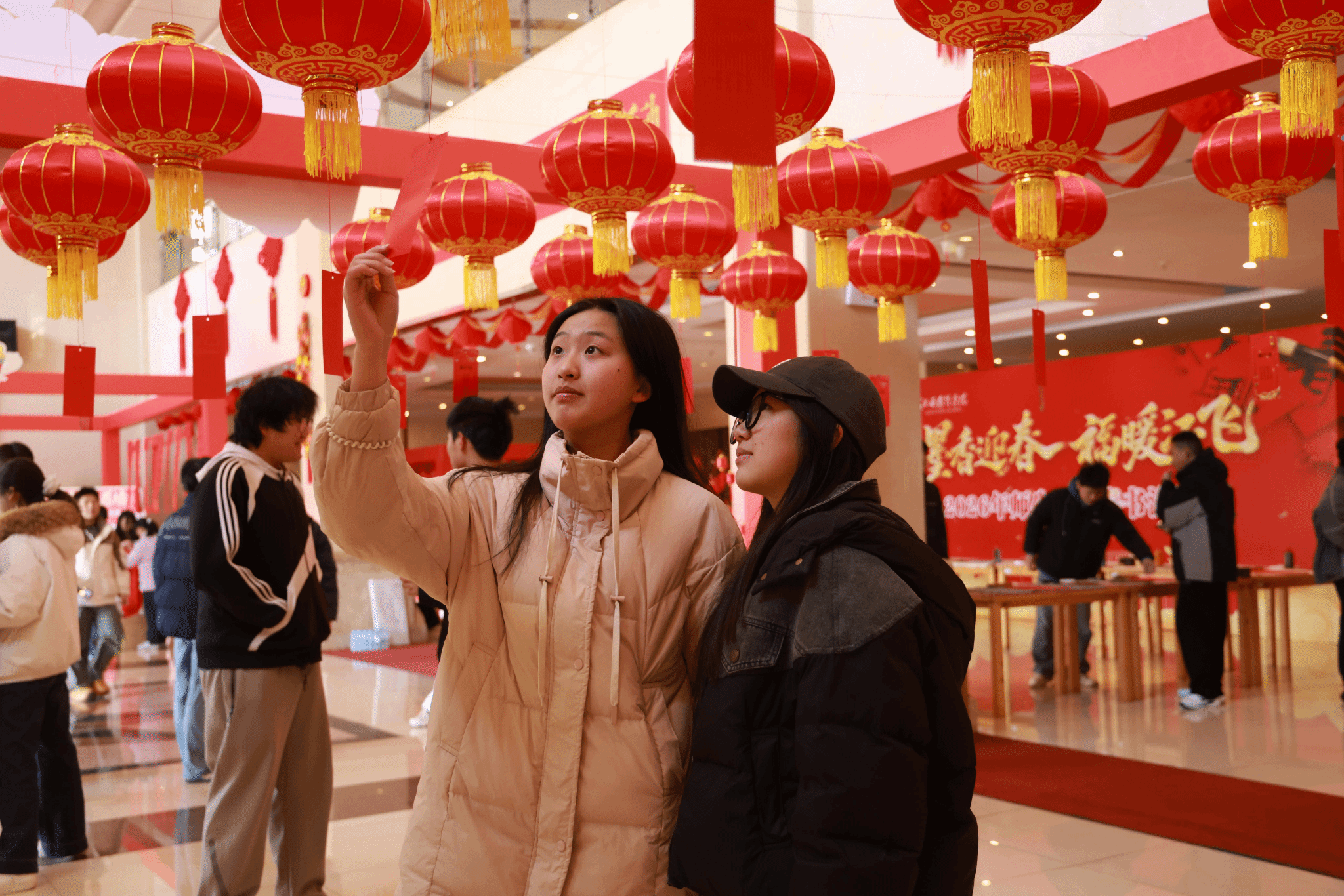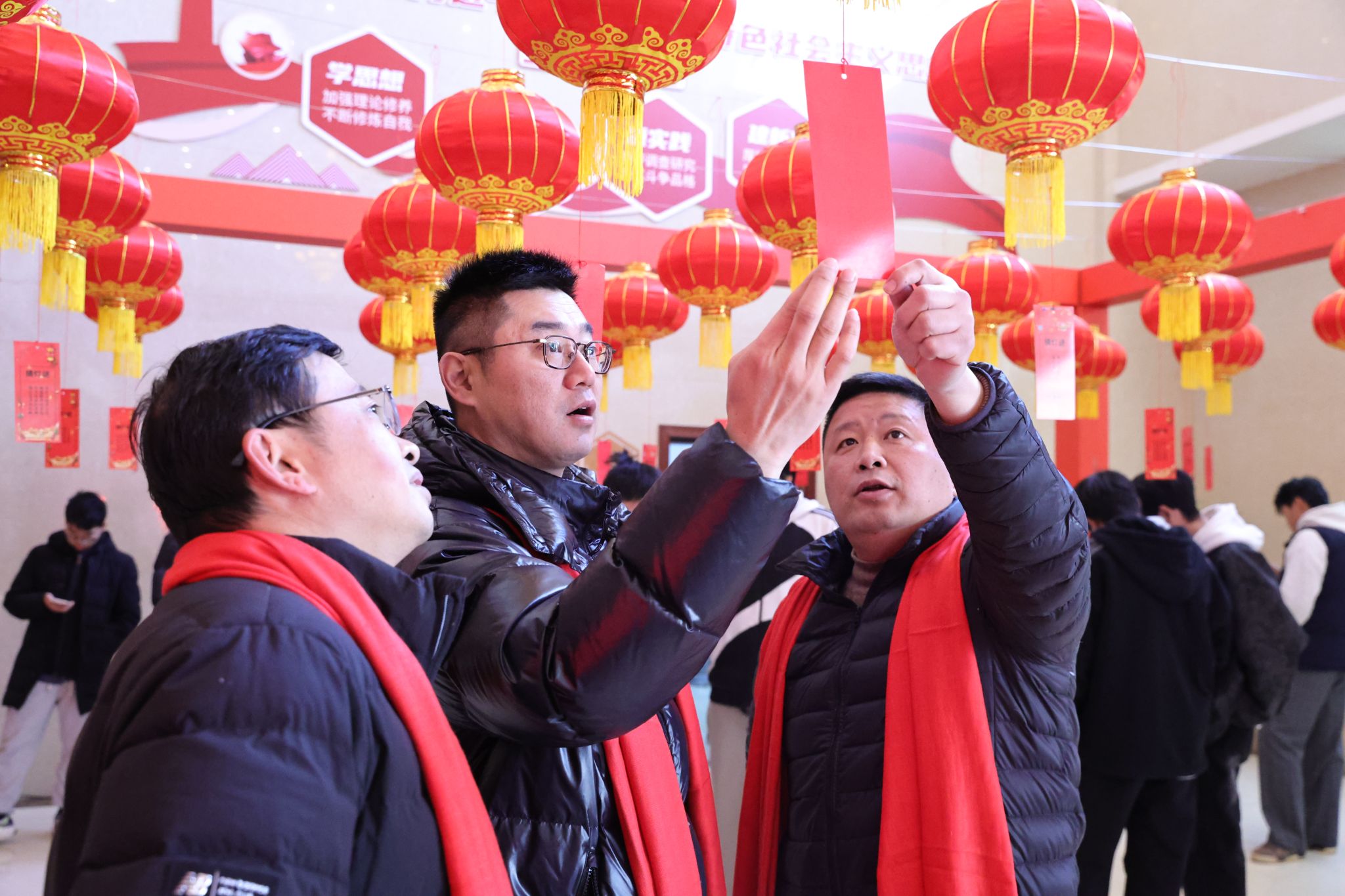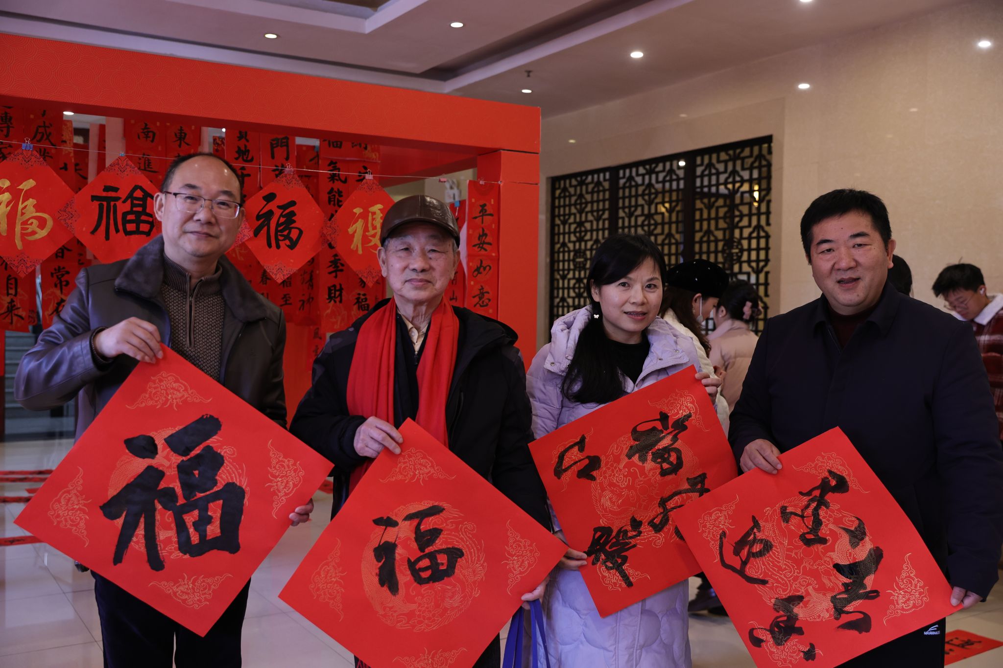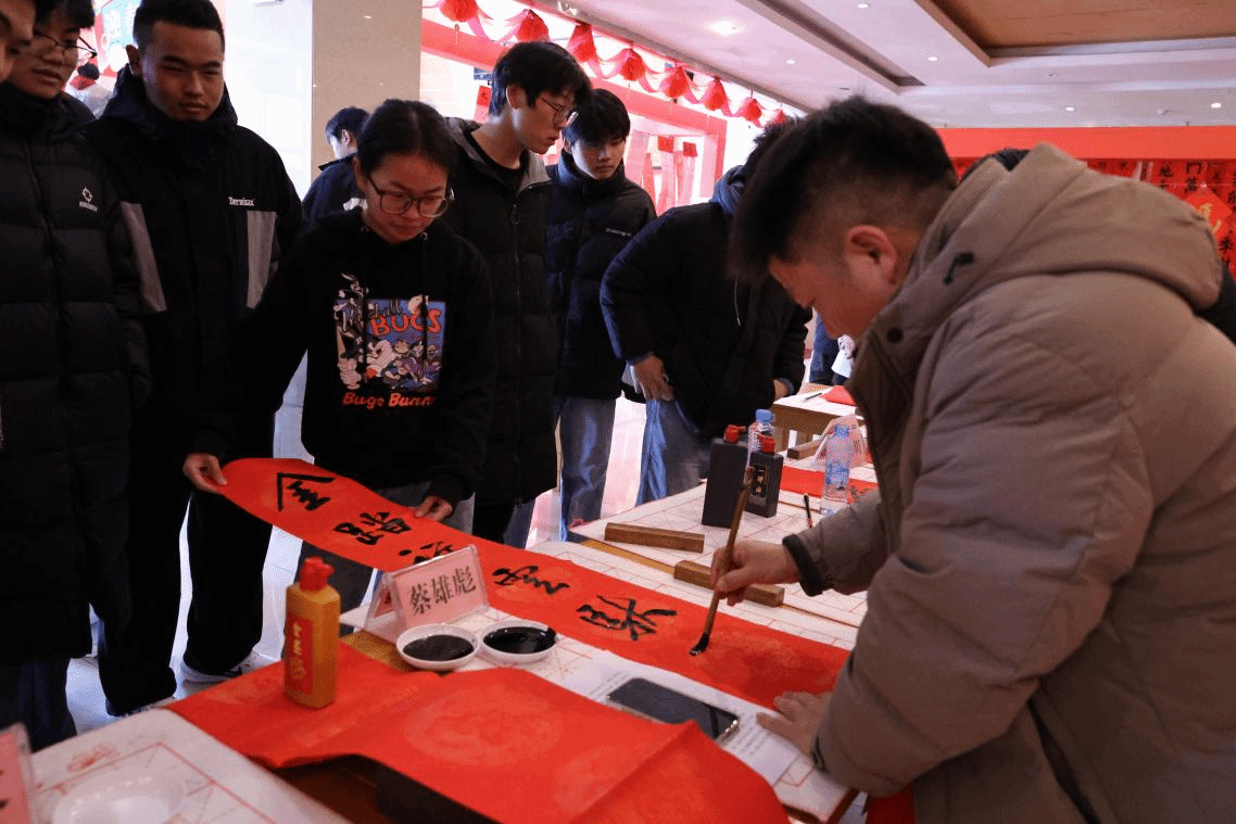 活动现场,南昌市书法名家、学校退休职工代表、有书法特长的青年教师和书法协会的同学们一起现场挥毫,书写春联与“福”字赠送给参与活动的师生,共同传递新春美好祝愿。
