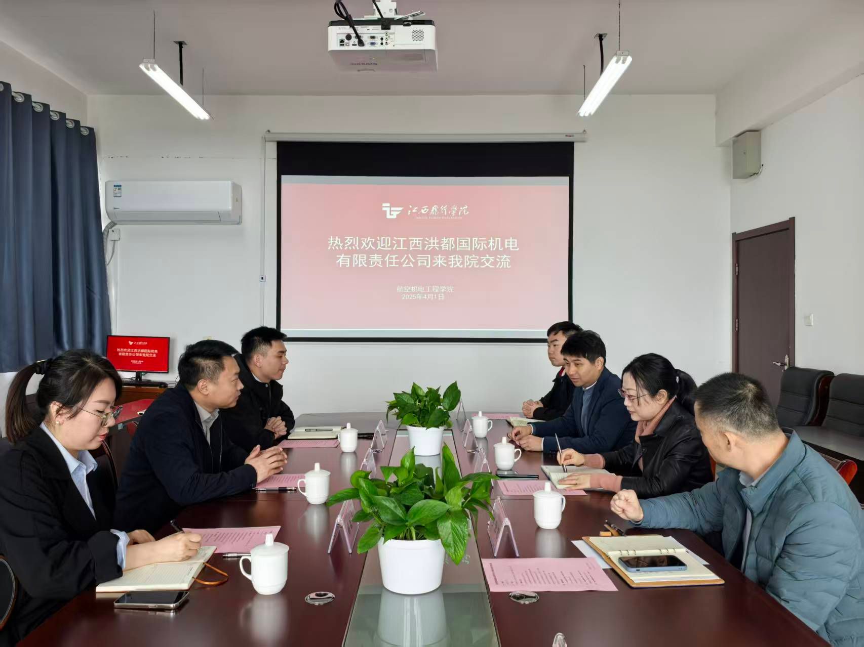 为进一步深化校企合作、推动产教融合协同发展,4月1日,江西洪都国际机电有限责任公司总经理吴剑一行来我院交流,航空机电工程学院党政班子及相关人员陪同会见。