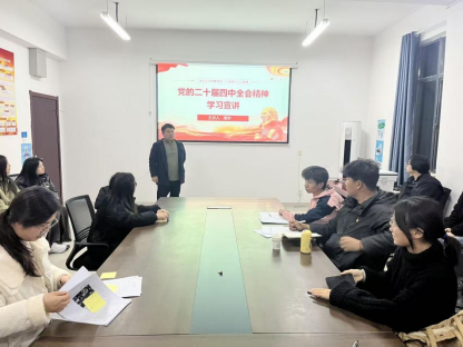 为深入学习领会党的二十届四中全会精神,切实把青年学子的思想和行动统一到党中央决策部署上来,12月18日下午,文法学院在科技楼402党员活动室举办专题党课,集中学习贯彻党的二十届四中全会精神。学院党总支副书记周宇作辅导报告,30余名学生预备党员及入党积极分子聆听学习。